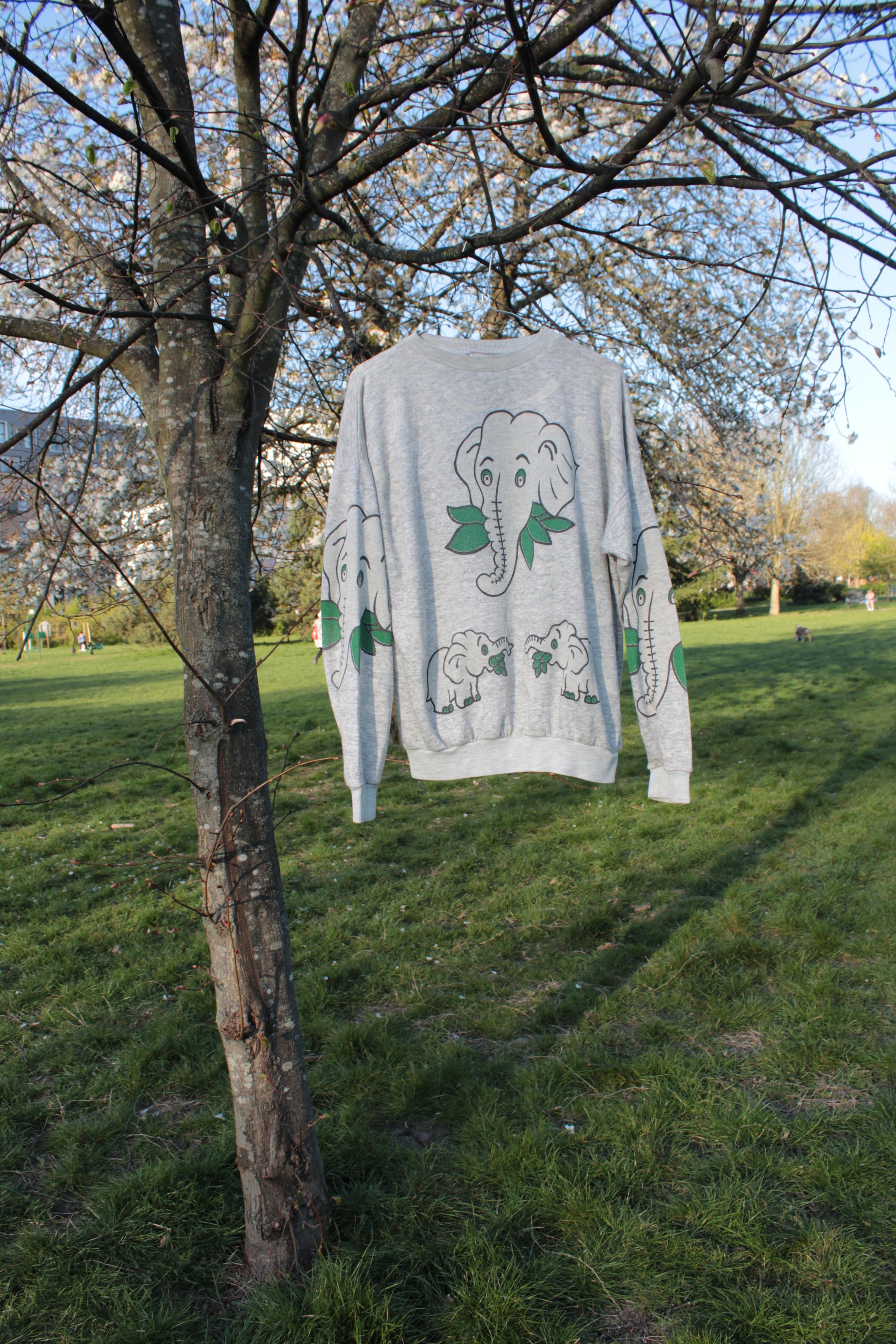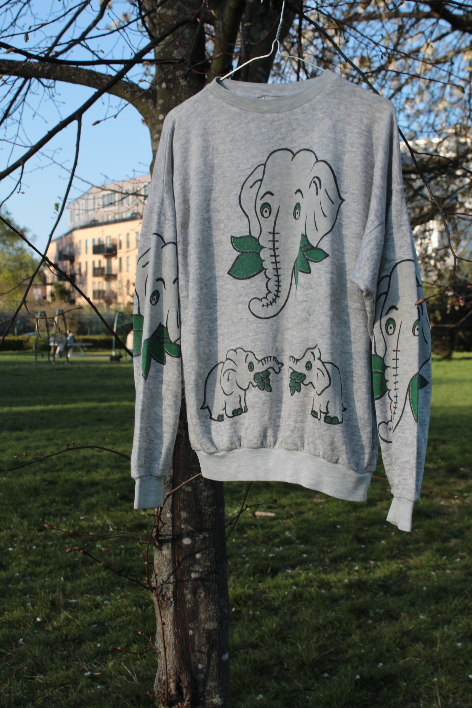 Featuring elephant prints on both front and back, this piece has a unique vibe. Still, thanks to its easy-to-style gray and green color scheme, it works perfectly as a layering piece.