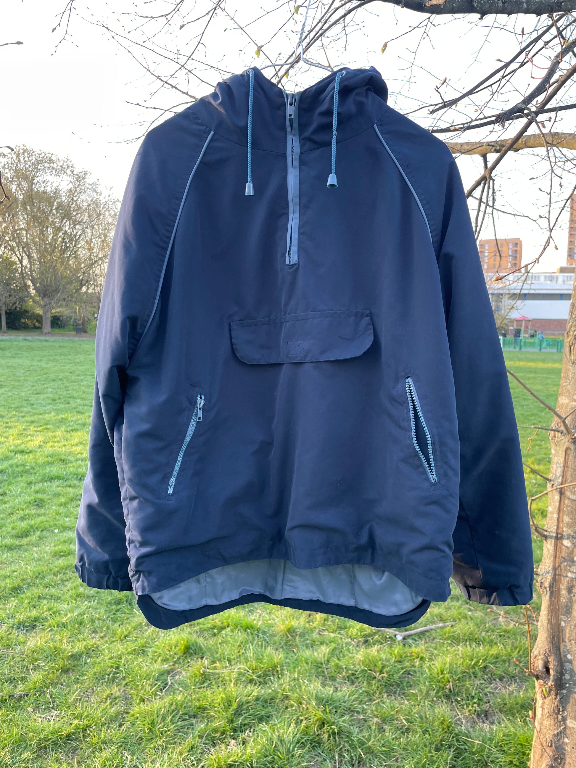 ポリエステルのアノラック中綿が入っているのかかなり暖かく、見た目着心地機能性すべてにおいて最高の1着。ですが、左おなか当たりのポケットのチャックの欠損があります、、、なんとも惜しいですがおすすめできる1着に変わりはありません